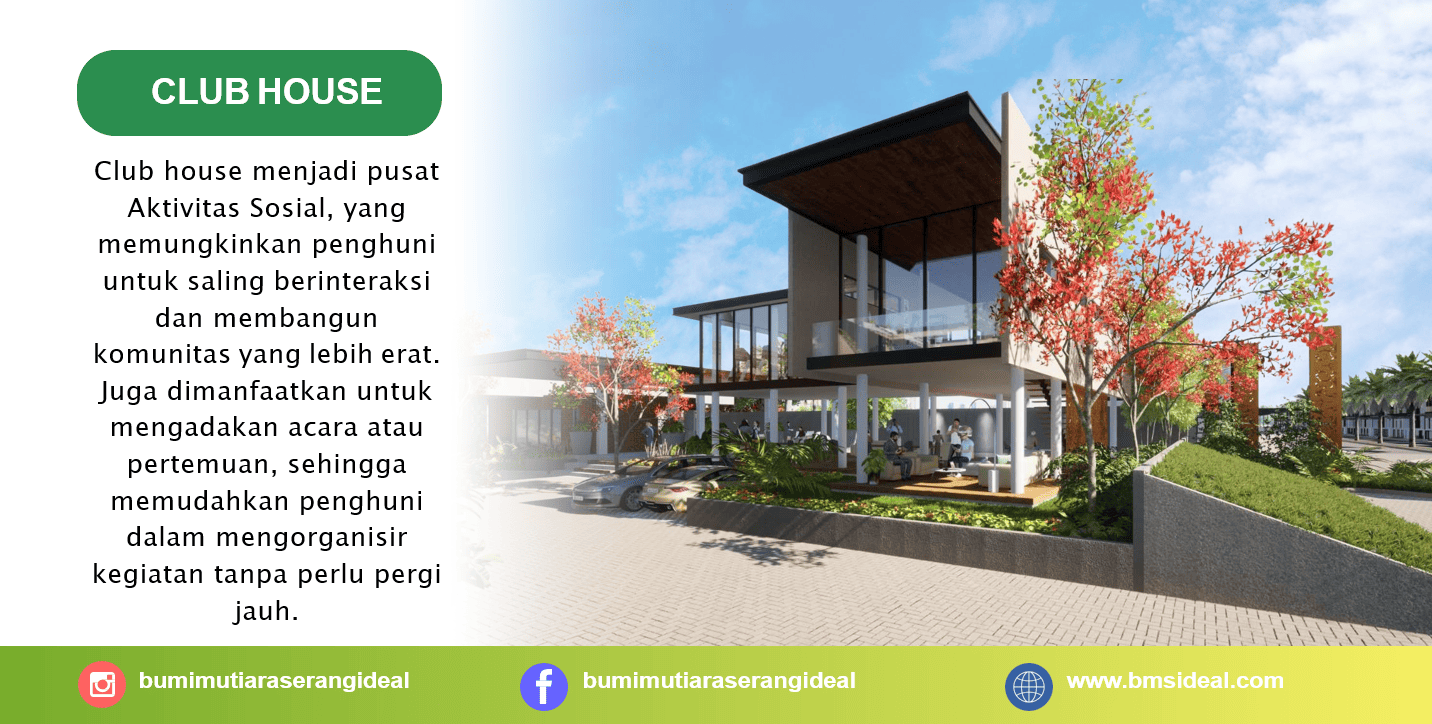 Menghadirkan fasilitas eksklusif untuk rekreasi dan sosialisasi, menyediakan ruang berkumpul, area olahraga, serta berbagai layanan yang menunjang gaya hidup modern penghuni 🏡🎾🏊♂️