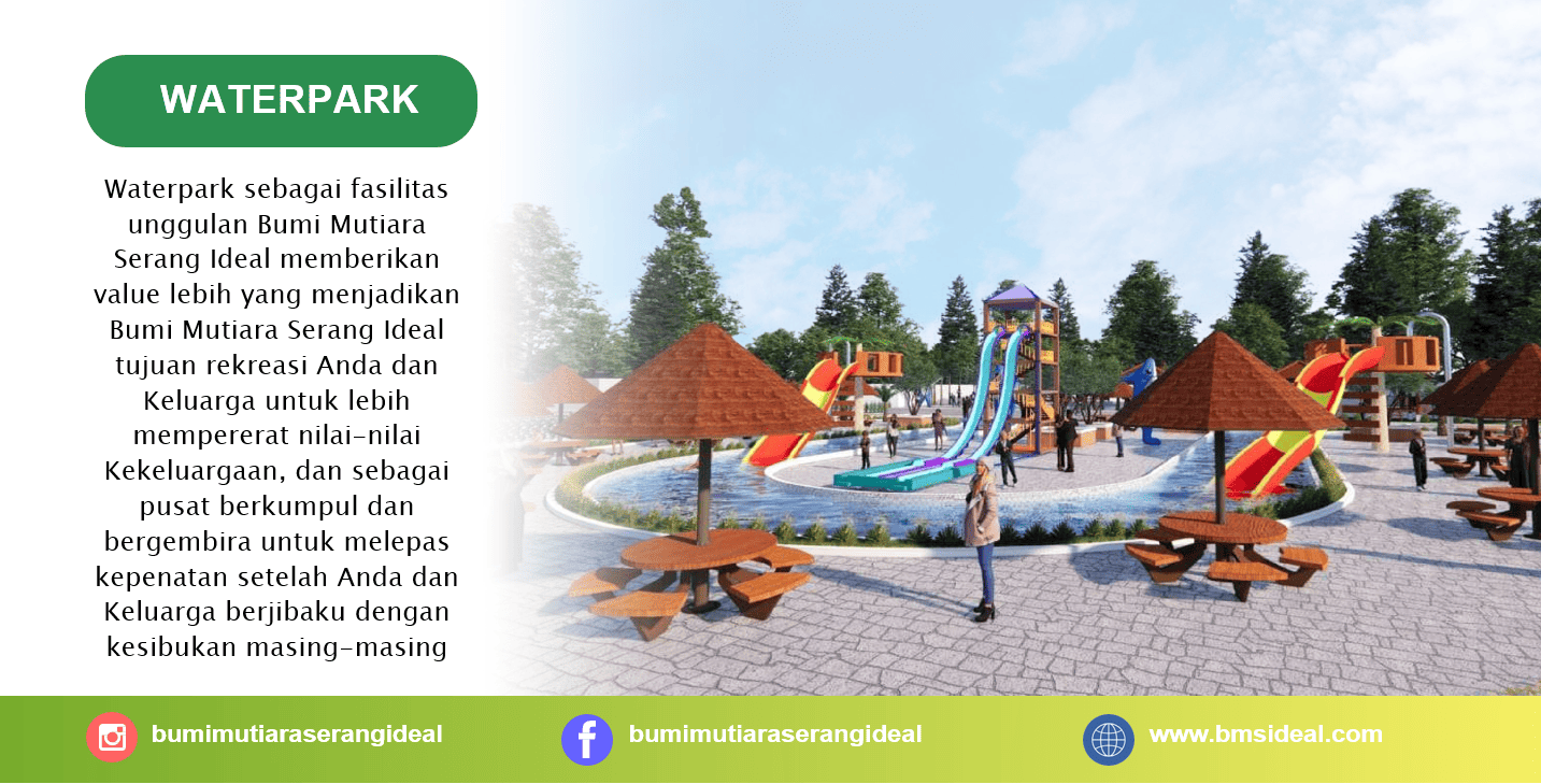 - Waterpark tematik dengan konsep edukatif berbasis nilai moral dan sains, mengajarkan pentingnya ekosistem, air bersih, dan pelestarian lingkungan kepada anak-anak dan keluarga.