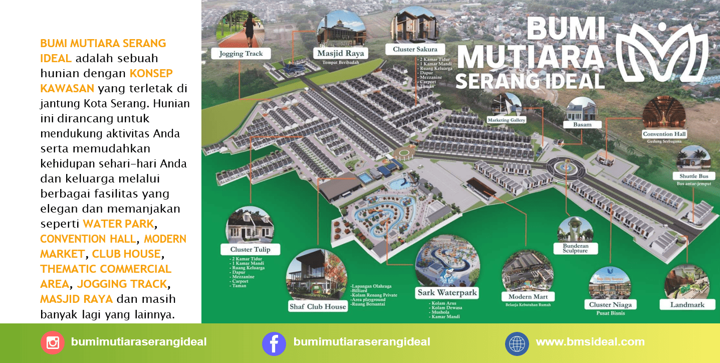 BMS Ideal menawarkan konsep hunian modern, ramah lingkungan, dan berkelanjutan, dengan fasilitas unggulan seperti Masjid Raya, Islamic Center, Water Park, dan Modern Market. Lokasi strategisnya di jantung Kota Serang menjadikannya pilihan ideal bagi keluarga dan investor.